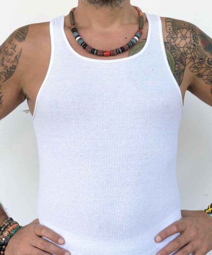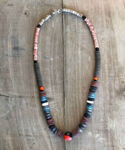 Made of natural minerals and clay, mineral necklace has a grounding potency for the user.All the colors are natural and colours vary depending on the combination of the natural minerals. Hand made by Colombian Artisan.