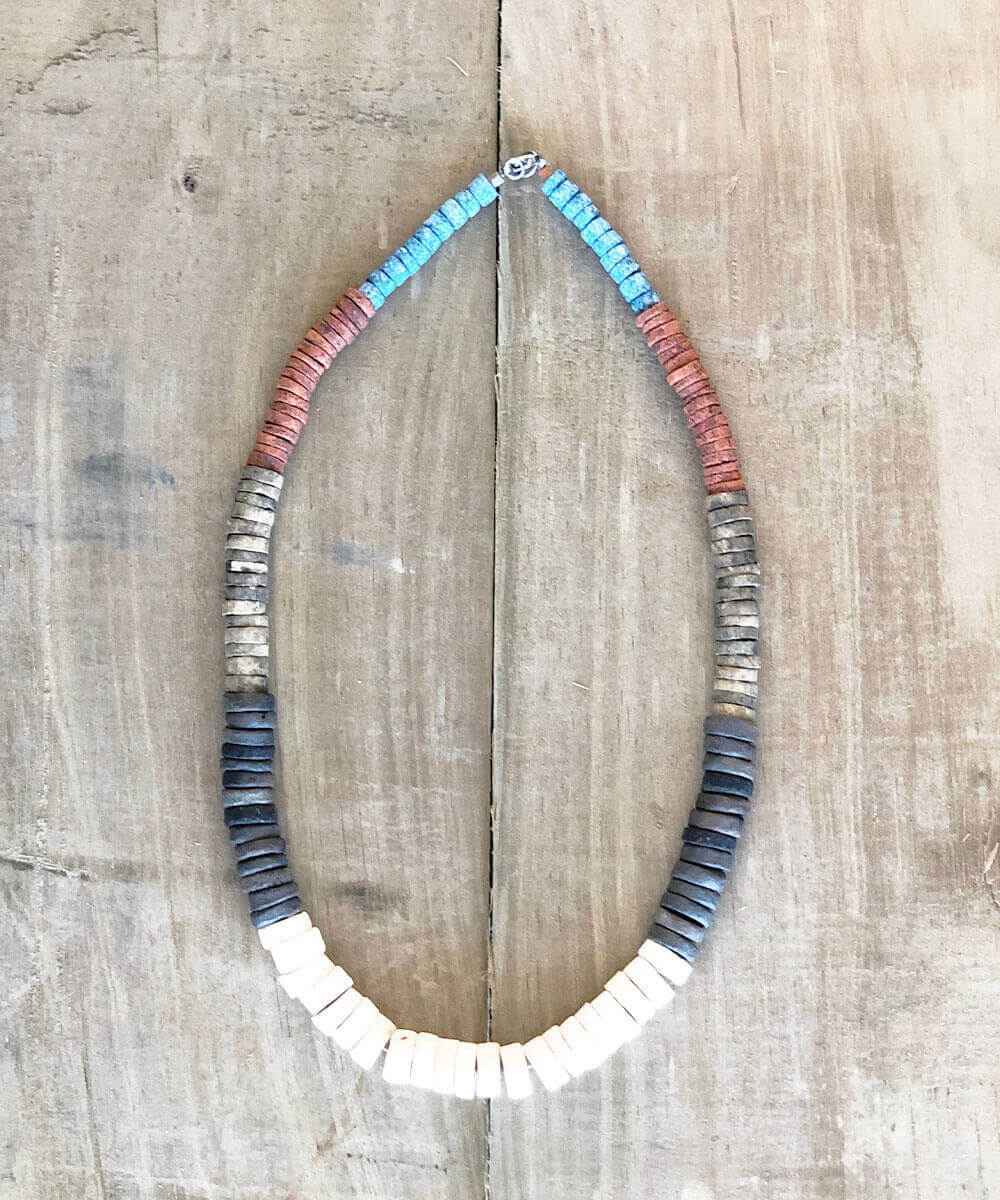 Unique clay mineral necklace handmade by Colombian artisan. These clay necklaces has a grounding quality due to the earth element they have. Each necklace is delicately hand-made and the naturally have color differences due to the minerals they contain. Non of them has artificial coloring or painting. This necklace also decorated with chumbimba seeds for energy protection.